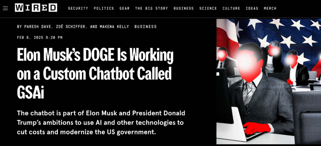连线杂志报道(就是之前曝光DOGE团队由6名平均年龄22岁的年轻人组成的那家媒体),马斯克的DOGE正在开发一个名为GSAi的工具,旨在管理联邦政府的办公楼、合同和IT基础设施,同时分析大量的合同和采购数据。
