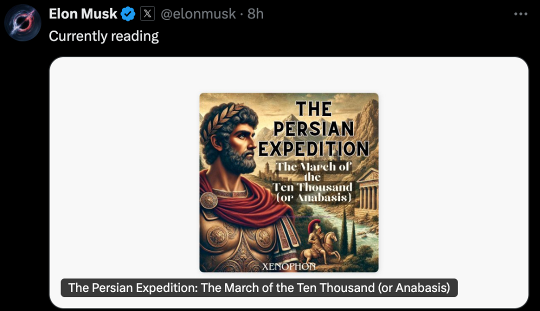 色诺芬是这支军队中的一员,他在书中详细描述了希腊雇佣军如何克服重重困难,包括与波斯军队的战斗、穿越无人的沙漠和山脉,最终成功返回希腊的艰难旅程。书中大量涉及了对领导力、勇气和忠诚的思考。