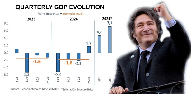 米莱的政策使得该国2025年第二季度GDP预计同比增长7.1%,过去两个季度这个数字分别为1.7%,4.7%,在之前,这一数字长期为负。