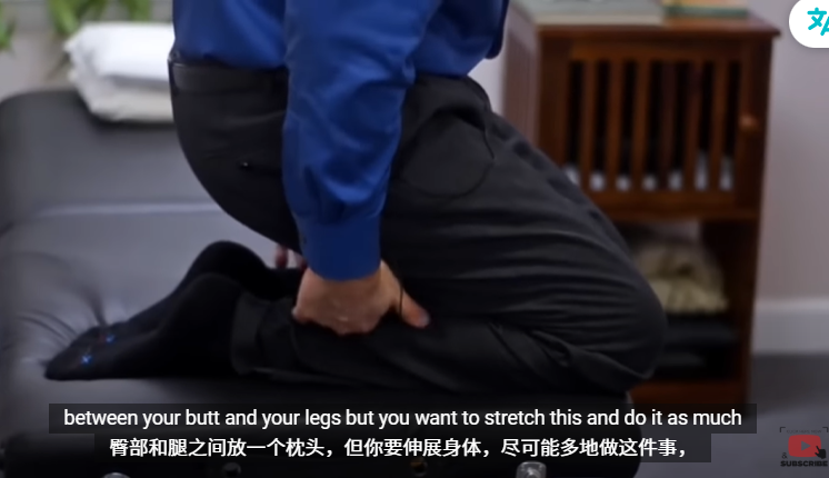 如果还是做不到,可以在屁股和腿之间垫个枕头,拉伸脚前部,尽可能多地做,应该不会感到疼痛。原理是:该方法能拉伸脚前部相反(与足底相反)的肌肉和筋膜,这会向脚底发送信号,让神经信号关闭。做完后,可以给足底的疼痛重新打分,并和未做之前做比较。
