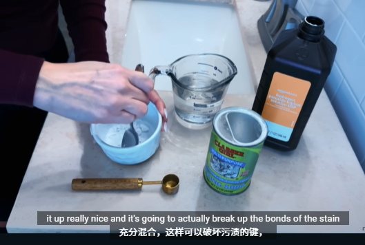 制作和使用方法:第一步:准备一个小容器,在里面放一茶匙小苏打。第二步:滴入3滴3%过氧化氢。第三步:加入8滴水。第四步:充分混合搅拌均匀。这种糊状混合物可以打破牙渍的黏合,分解牙渍的分子链,牙渍是特定的分子链,氧气会破坏它,从而释放出牙齿上的色素,使牙齿变白,这就是过氧化氢如此重要的原因。第五步:用牙刷沾着糊状混合物轻轻刷洗牙齿的外侧和内侧1到2分钟。这也有助于去除口腔内的细菌,并减少牙菌斑的形成。