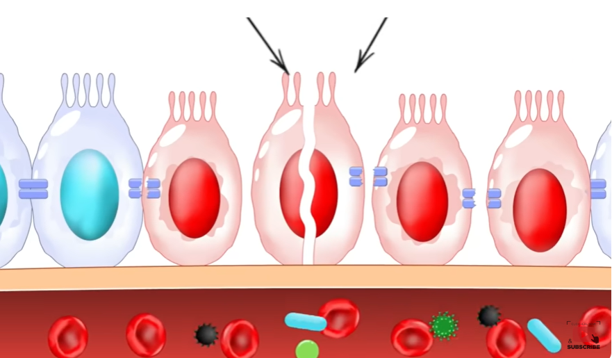 在肠道内有一些倒置的小根状物,当患有肠漏时,这些毛发状突起之间会出现缝隙和孔洞,使得食物颗粒和各种物质都能够未经免疫系统的许可就可以通过。