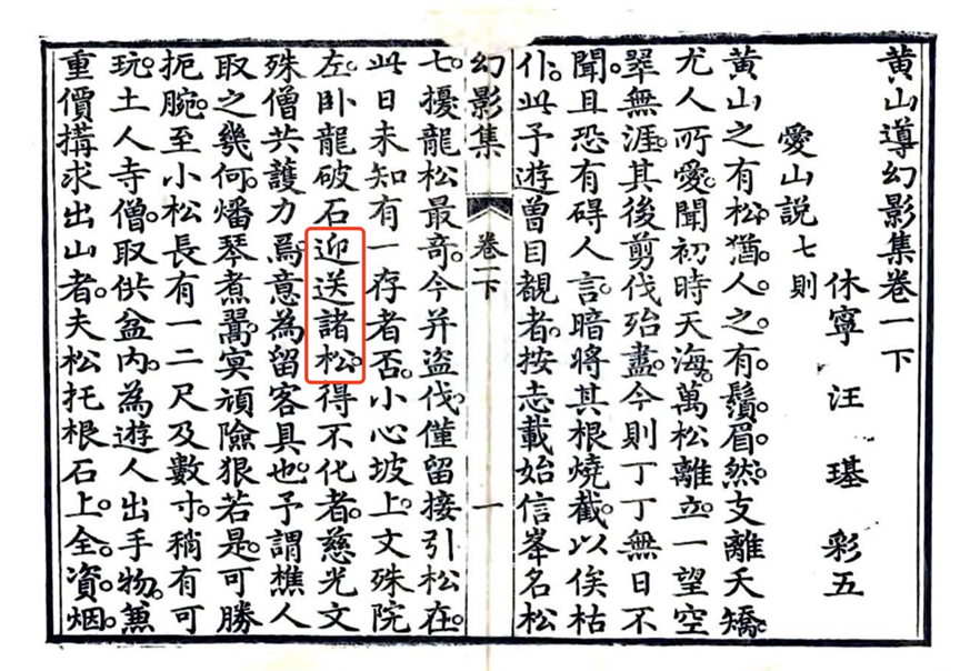 为了知道“黄肇敏”是不是一个好“记者”,在这之前到底有没有“迎客松”和“送客松”,双语君又搬出了一本更早的古籍。