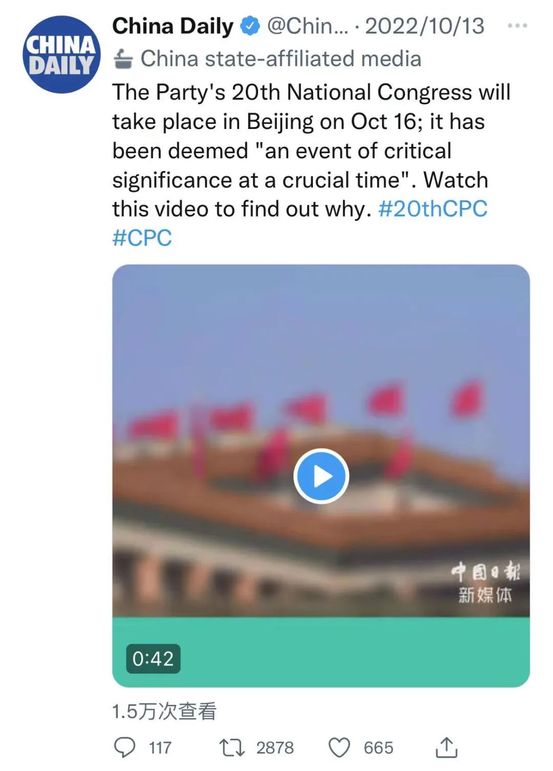 中国日报推特账号视频截图↓↓↓