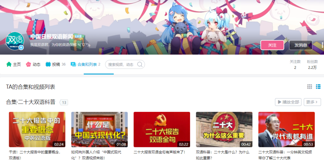 双语君B站“二十大双语科普”视频合集截图↓↓↓