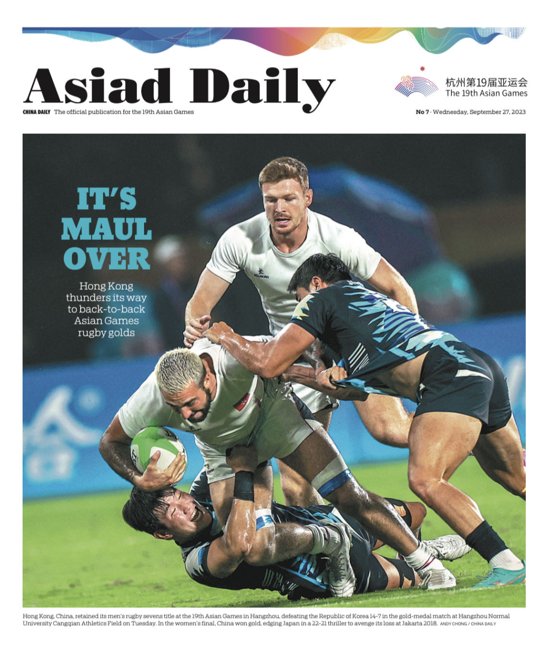 当天中国香港男子橄榄球队成功卫冕,maul是橄榄球比赛中术语,意为争球混战,It’s maul over也是橄榄球英文报道中的经典说法,和It’s all over(全都结束了)一语双关。