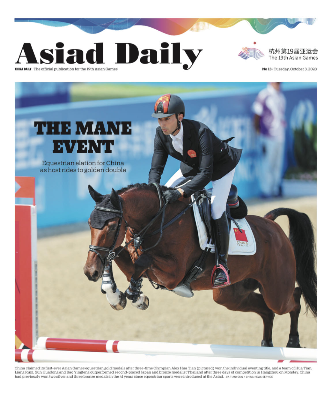 标题巧妙使用了谐音,mane意为鬃毛,读音上近似main(主要的),event (事件)又能对应夺冠的马术项目 eventing,用来形容骑手华天及其队友为中国拿下亚运史上首枚马术金牌的重要时刻。