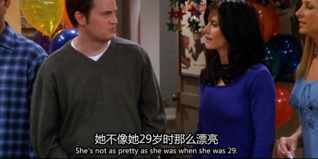 恐惧衰老是很多人不想过生日的一个重要原因。社交媒体盛行的今天,大家在各种社交媒体上晒出的各种照片和生活动态,也在无形中强调了年轻、美丽的价值,把这些品质作为定义一个人的标准。对衰老的恐惧往往因社会的期望而加剧,人总想在增长一岁时达成新成就。如在 25 岁之前找到一份称心如意的工作,亦或是在 30岁之前结婚。这无疑增加了人们的焦虑和紧张。例如,在著名影视剧《老友记(Friends)》中,瑞秋也不想大家庆祝她的30岁生日, 不允许大家提到和变老、变丑相关的词汇。