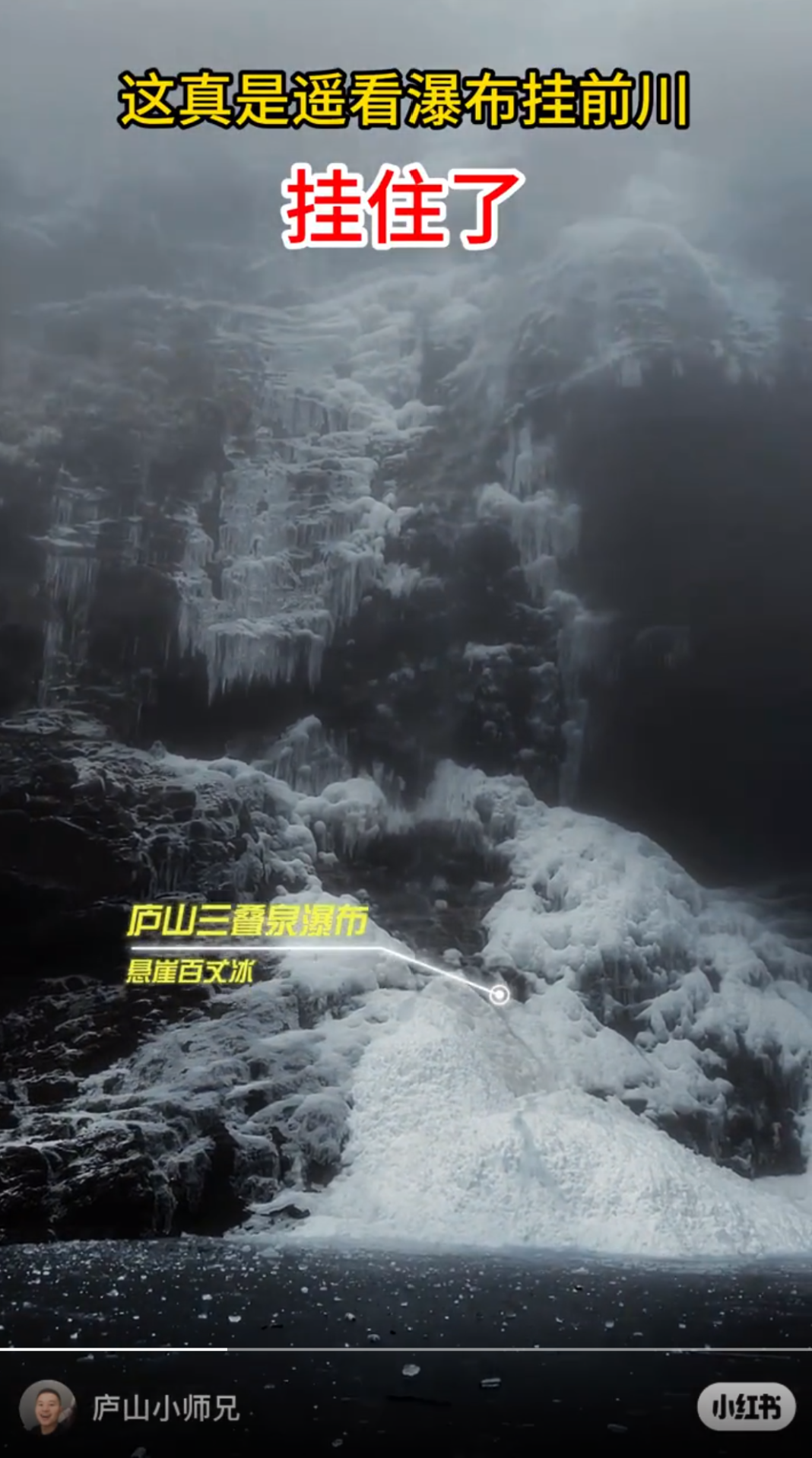 前几日,网友@庐山小师兄就在小红书上分享了一段庐山瀑布“挂住”了的视频: