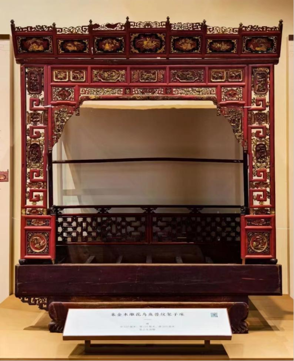 清 朱金木雕花鸟鱼兽纹架子床 张之先捐赠