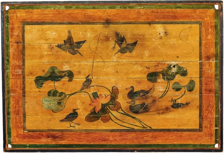 民国 彩绘水禽莲花纹床顶 张之先捐赠