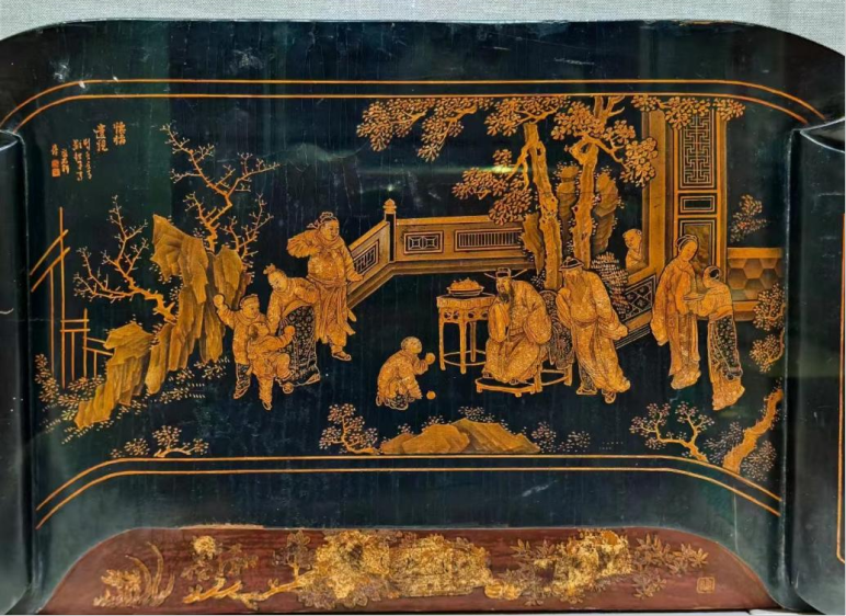 民国 描金漆绘《二十四孝》故事图床围(“怀橘遗亲”局部) 张之先捐赠