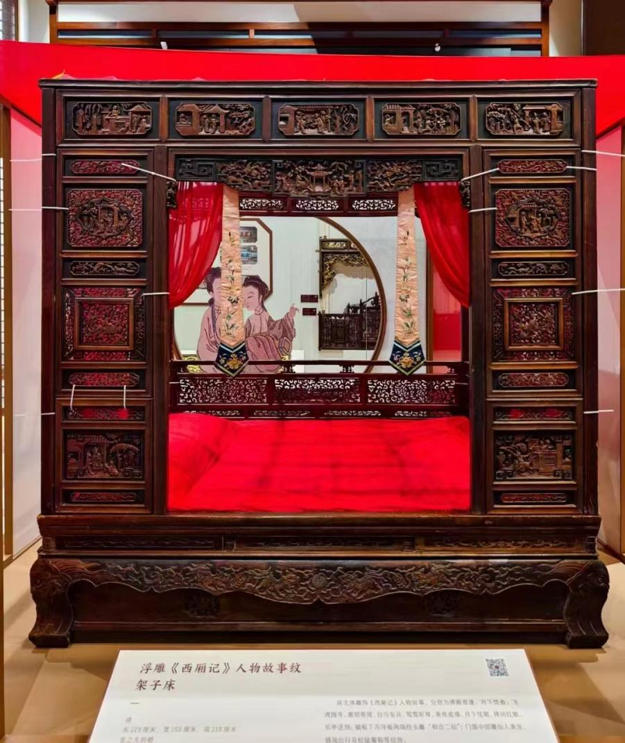 清 浮雕《西厢记》人物故事纹架子床 张之先捐赠