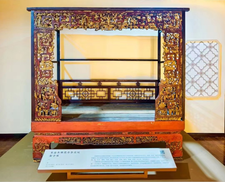 清·朱金木雕花卉杂宝纹架子床 张之先捐赠