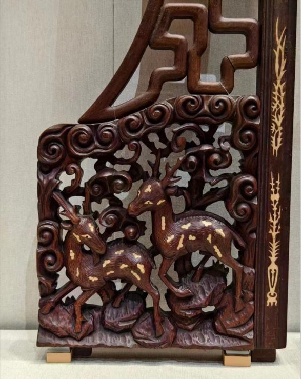 民国 通雕双鹿纹床门围(局部) 张之先捐赠