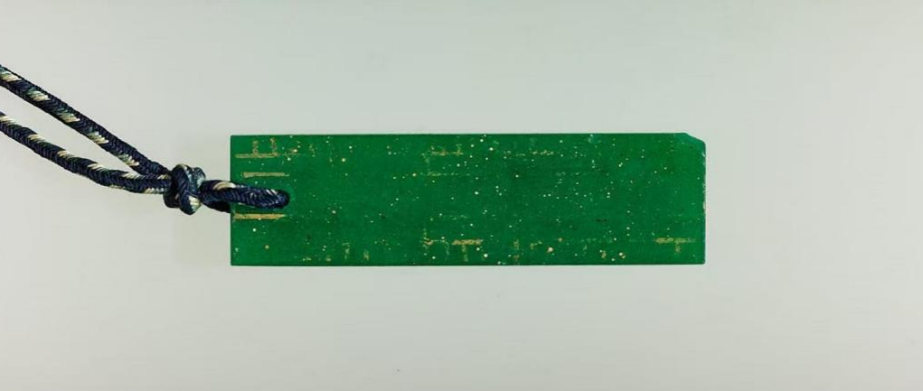 正仓院所藏琉璃鱼形正是受这一制度影响的产物,但脱离了符的功能,而只是作为装饰品。挂在腰间的琉璃鱼形五颜六色,光彩夺目,刻线处还涂有金泥,彰显着持有者的高贵身份。这次展出的四件琉璃鱼形中,除了碧琉璃鱼形的原材料是碱性石灰玻璃外,其他都是由铅玻璃块削制而成。