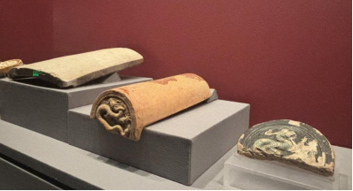 卞坚介绍,这种瓦当北京没有,南京有但是很少。这件瓦片的造型、胎釉的结合都非常的好。这是明初朱元璋对景德镇进行了有效管理的有力证明,最高规格等级的釉里红龙纹瓦当,枢府釉(即卵白釉瓷,是元代景德镇窑在生产青白釉瓷基础上新创烧的一种高温釉)的一些构件展出,更说明明初不仅是把元朝的这些机构接了下来,元代官方高等级高技术的工匠,也在给明初的官方朝廷进行生产活动。为后来永宣时期官窑瓷器的繁荣发展奠定了非常好的基础。