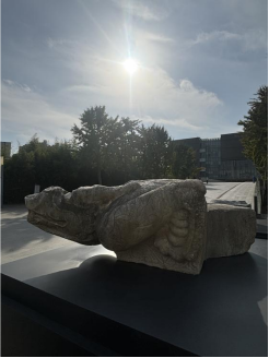 “要想反映洪武时期修建中都的规模和气势,仅靠展厅的一些小构件,不足以让观众有这种视觉震撼的感觉”,安徽博物院副院长、“天下中都——明洪武时期精品文物展”总策展人卞坚如是说。加之石刻构件原本也都在野外暴露,满足室外展示的需求。于是“天下中都”展特地在东门引桥小广场做了一个特殊的设计。据悉,这个打卡点会一直保持到明年展期结束。