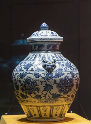 元 青花缠枝牡丹纹兽耳盖罐 蚌埠市博物馆藏