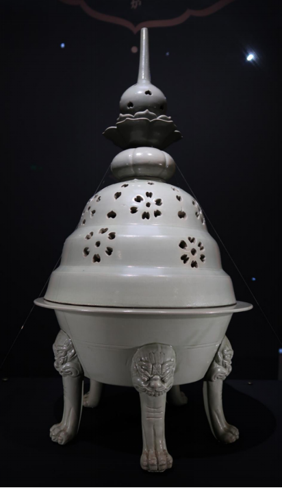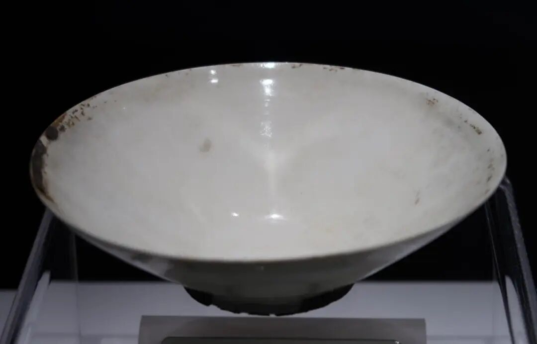 当然,吴越国也并不只是能看到青瓷。如果说“类冰似玉”的吴越秘色瓷为世人青睐,那么“类银似雪”的白瓷亦毫不逊色,吴越国因屡立战功又恪尽职守为中原朝廷上贡青瓷,来自北方的精品白瓷也被大量赐给吴越国王,所以在吴越国也可看到白瓷。这些白瓷多刻“官”款、釦金银,符合“金装定器”的描述,与定窑遗址出土的如出一辙。