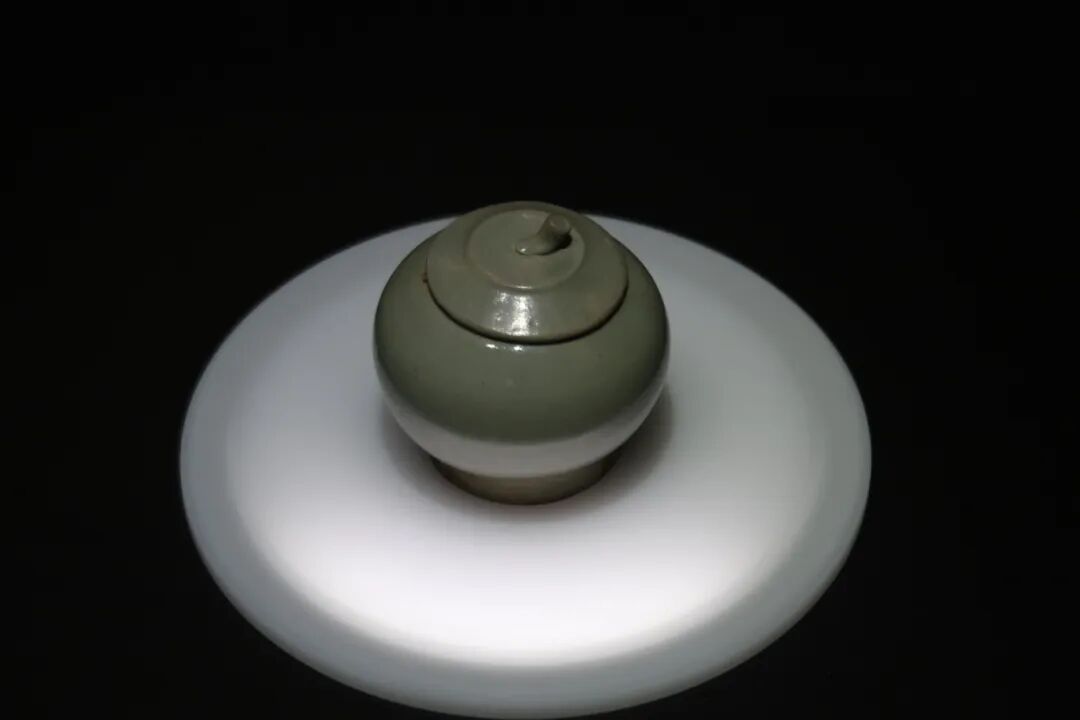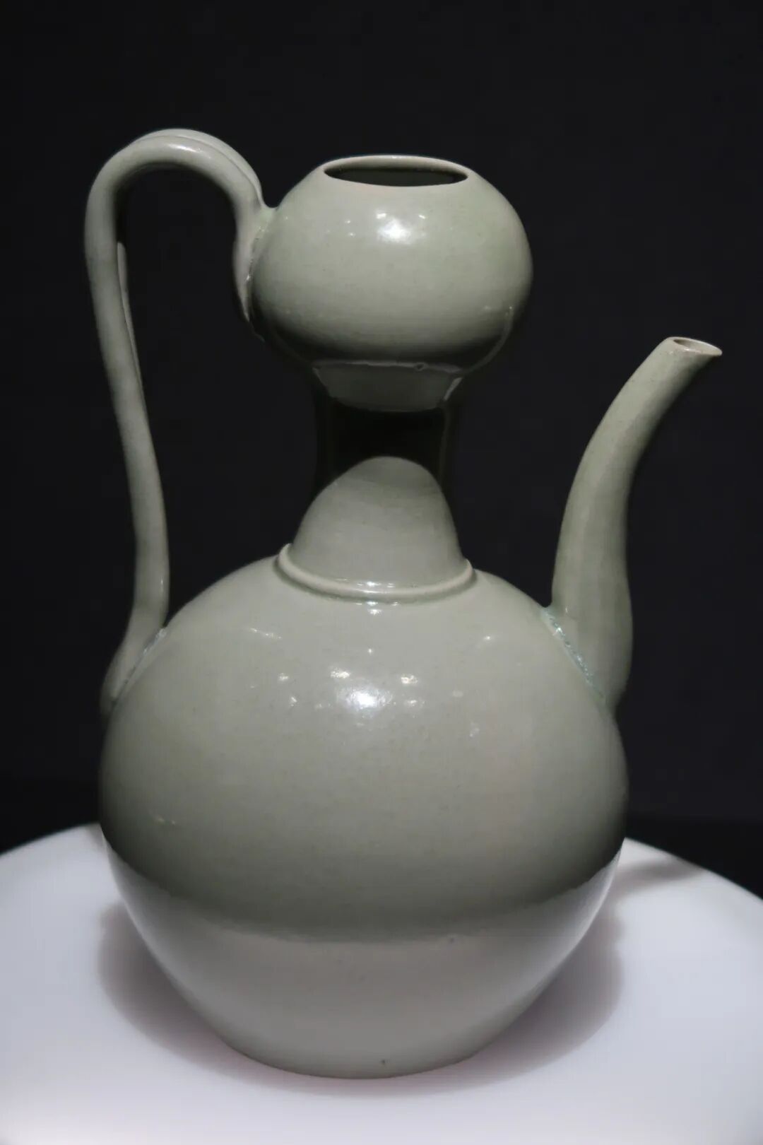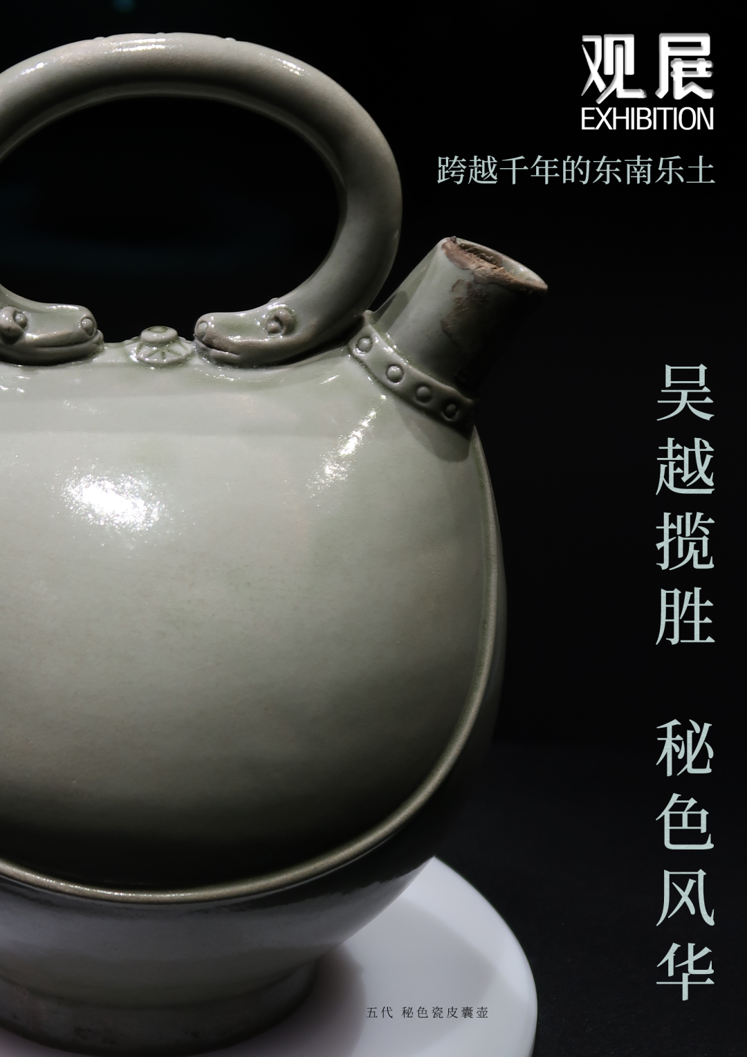 有时,吴越国秘色瓷也会受到他国文化的影响,呈现出独特的形制。例如秘色瓷皮囊壶就是对辽国文物的仿制,皮囊壶是辽国人的生活用品,又是能代表身份地位的贵族用品。秘色瓷皮囊壶的出现,说明了吴越国的文化包容和在制瓷技术上的不断创新。