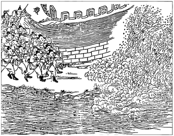 在修筑海塘的过程中,还有“钱王射潮”的著名故事。相传,钱镠当年下令修筑海塘时海潮汹涌不止,建设海塘极为困难,钱镠的部下们都认为是修筑海塘引起潮神的不满。钱镠并没有因此放弃修塘,而是在八月八日于钱塘江前布置一万名弓箭手,对潮神发出警告,如若海潮再次汹涌,则必万箭齐发。潮涌依旧,钱镠一声令下万箭直射潮头。潮头在此攻势下竟弯曲退走,留下“之”字的江水,这也是“之江”的由来。
