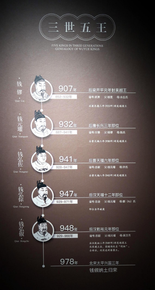 吴越国的历史以最后审时度势的“纳土归宋”告终。太平兴国三年( 978 年)五月,吴越国最后一位王者钱俶进入北宋京城开封,将其两浙十三州系数献给宋朝,成就了一段中华一统的佳话,其明哲保身也为钱氏家族留下了一条在两宋继续辉煌的康庄大道。