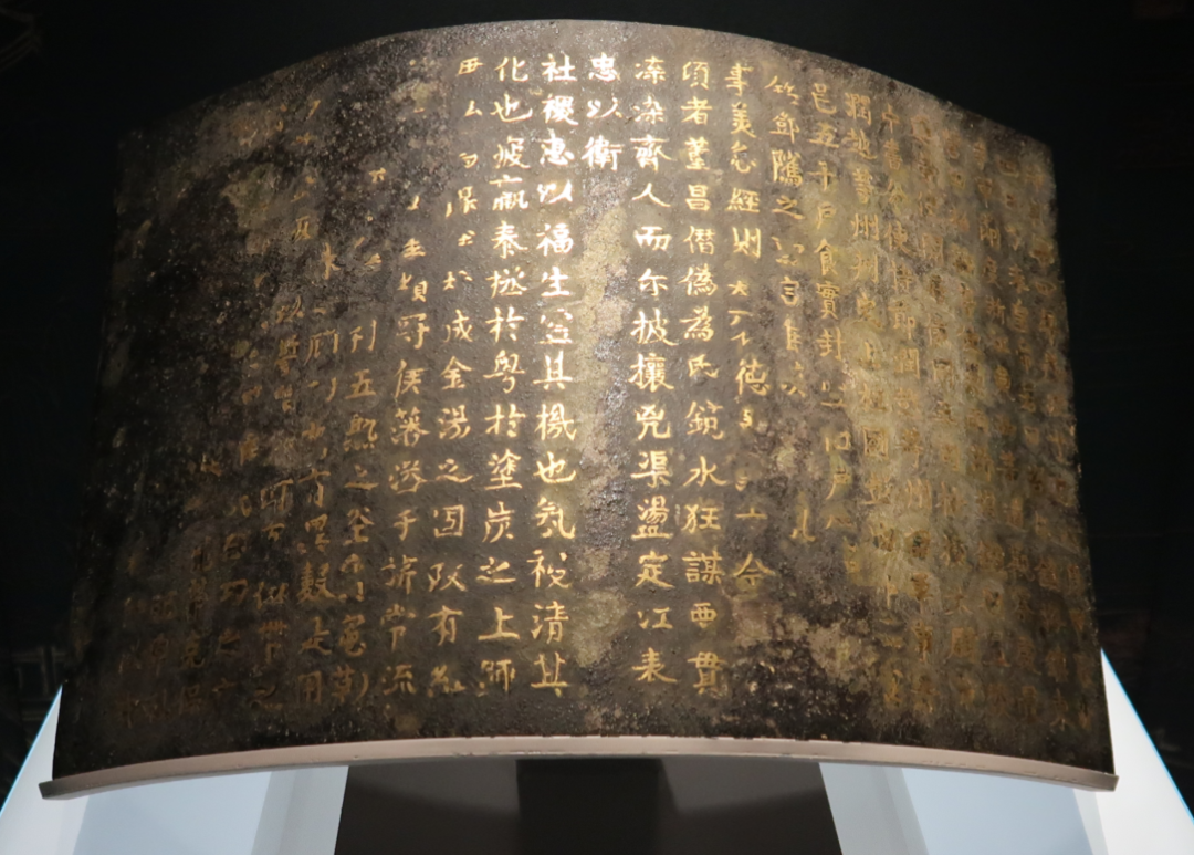 原件藏于中国国家博物馆。铁券,民间俗称“免死牌”,是历史上封建帝王颁赐给臣子的一种带有奖赏和盟约性质的信物和凭证,其上信词用金填写,故称“金书铁券”。因平定董昌叛乱有功,唐昭宗于乾宁四年( 897 )赐钱镠金书铁券以示嘉奖。铁券上书金字350个,券文言“卿恕九死,子孙三死,或犯常刑,有司不得加责”。