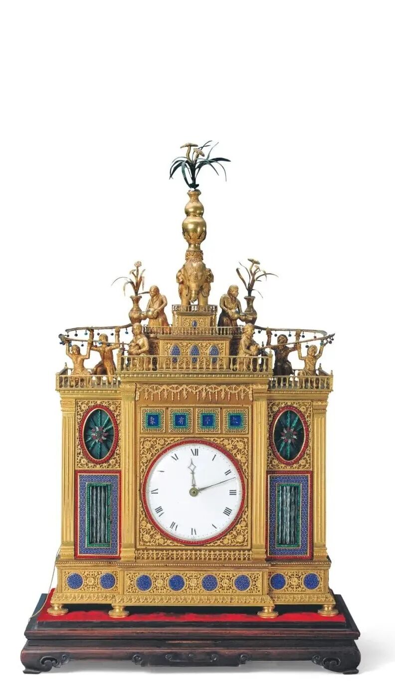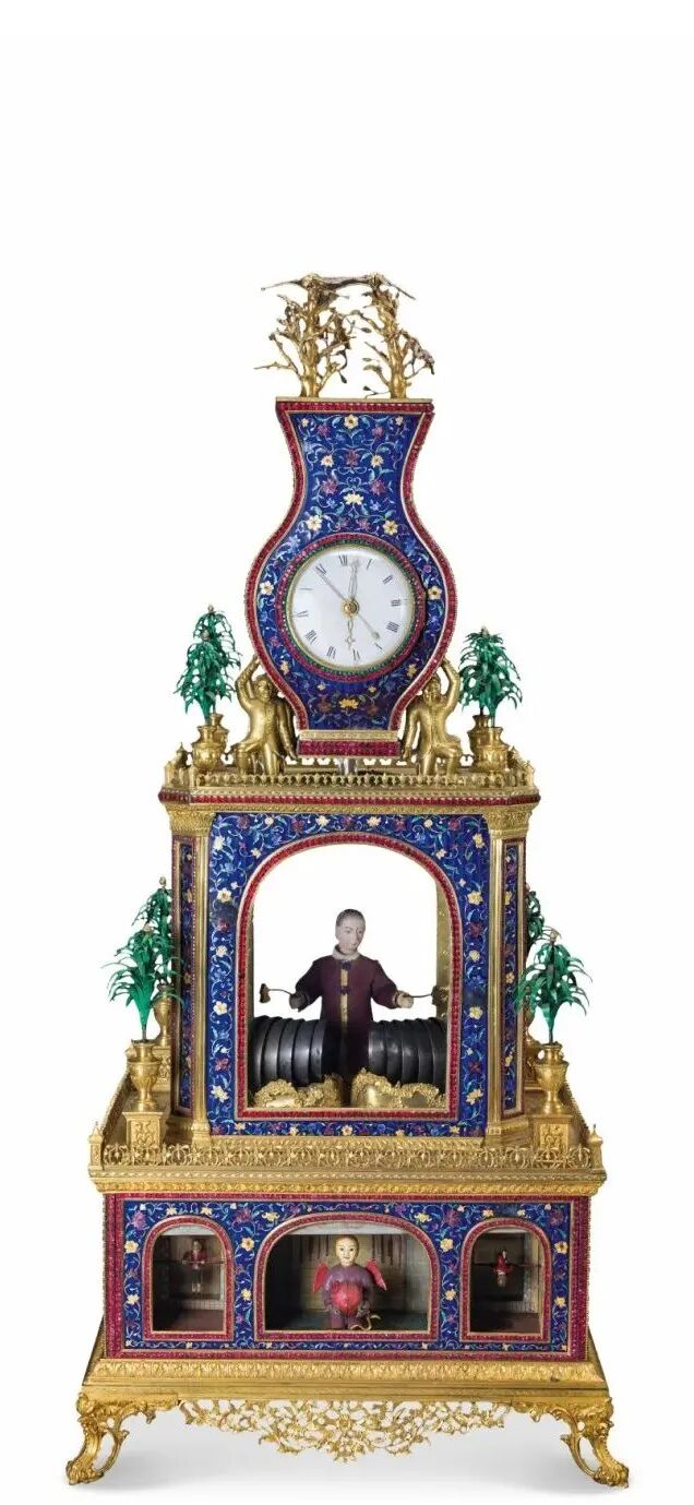 据说万历皇帝就非常喜爱自鸣钟,甚至怕自己喜爱的一座自鸣钟被太后要去,还悄悄在发条上做了手脚。清承明制,对自鸣钟的喜爱也一脉相承。有清一代,几乎每位皇帝都留下咏自鸣钟的诗篇,尤以康雍乾为盛,当时中国一度成为了世界上最大的时钟进口国。清代皇帝对自鸣钟浓厚的兴趣,直接推动了自鸣钟的贸易和制造,为扩大在华贸易,西洋钟在制作上会更加迎合中国人的审美趣味。