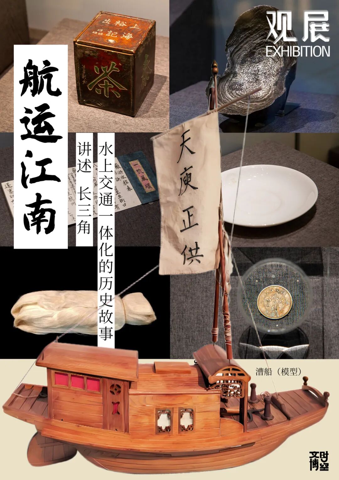 为集中展示长三角地区航运交通的历史渊源,中国航海博物馆联合上海市历史博物馆、宁波中国港口博物馆、苏州市考古研究所等12家文博机构,及江南航运史专家、藏家共同举办“航运江南——长三角水上交通历史文化展”。此次展览汇聚 200 余件珍贵展品,自 11 月 12 日起持续至 2 月 18 日,共分为“舟楫相配”“港埠通达”“商贾阜通”“浮家泛宅”四个部分。