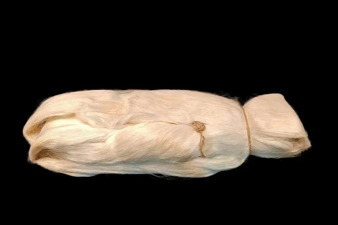 此件真丝属于纯手工缫丝,是晚清民初南浔农户家压箱底的物品。手工丝是当地最主要的经济来源,如家中有急事需要钱财,就可以直接把藏在箱子里的生丝换成银两,生丝也成为当地民众经济生活中的“硬通货”。