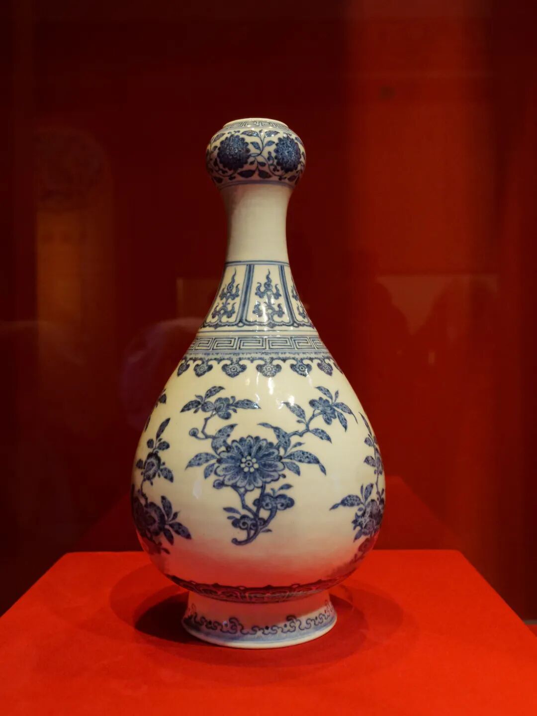 据清宫档案记载,乾隆三年六月二十五日,乾隆帝传旨将内府旧藏一批明代瓷器,交付景德镇御窑厂让唐英仿烧,“宣窑青花白地蒜头瓶”便在其中。韩瑾华捐献