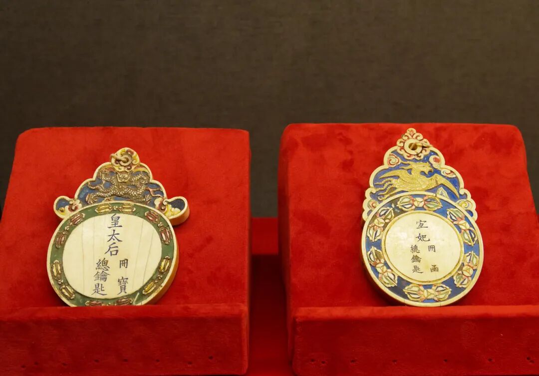 这次展出的清宫文物中,一些具有档案价值的文物很引人注目,如祺皇贵太妃的银印、庆郡王奕劻晋升亲王爵金册、道光还是皇子时矜印的书画等。此外,为同治大婚、慈禧大寿专门烧制的瓷器,慈禧的“大雅斋”专用瓷器,也都是很难得的珍品。这些展品中,有一些标注了来源,也有一些只标注了“天津博物馆藏”字样,未明确显示入藏途径,推测是时间太久,已无法确定是通过哪一条途径征集来的了。