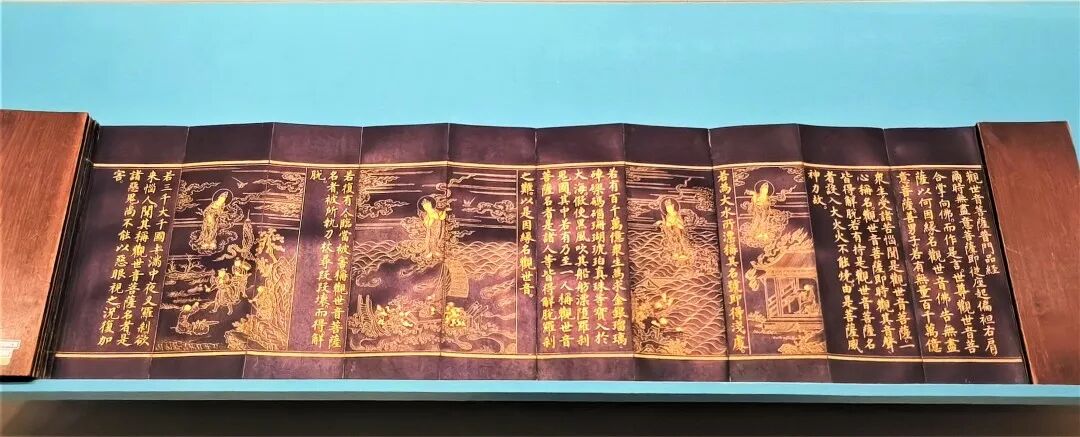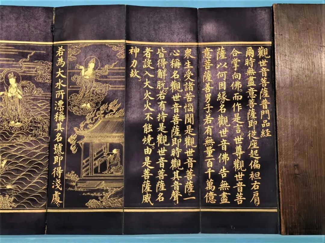 明 磁青纸—泥金书画册《观世音菩萨普门品经》