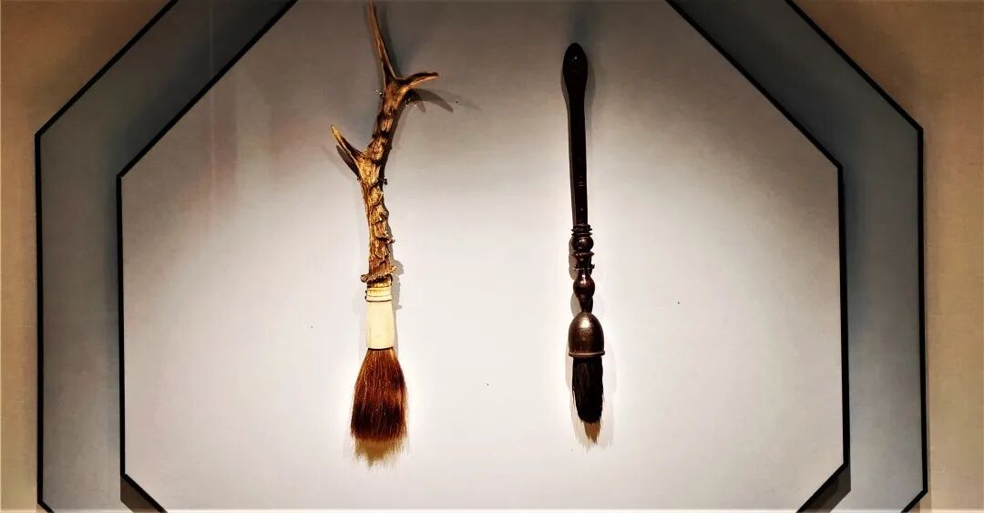 图左:清 鹿角杆笔,图右:清 漆木管鬃毫提笔