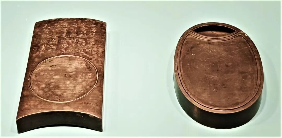 左:清代乾隆御铭仿汉石渠阁瓦行款砚