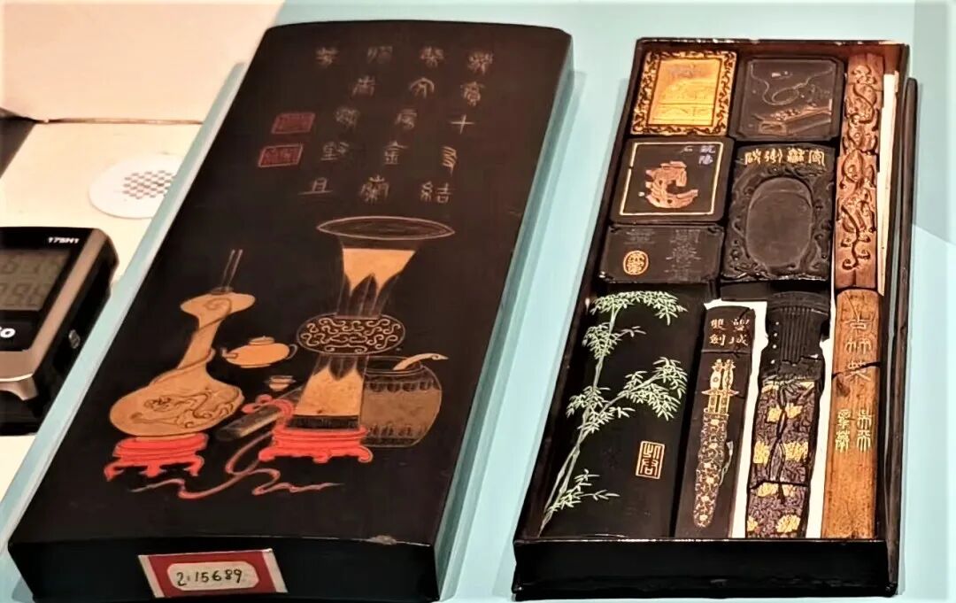 “文房四宝”展览,不仅有珍藏经年的笔墨纸砚,还有许多精美的文房陈设。