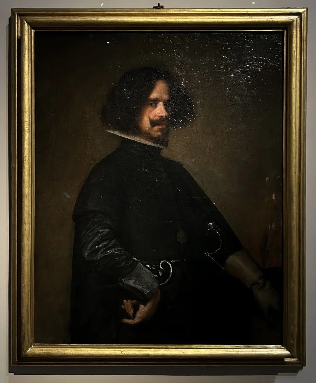 委拉斯凯兹的名作《宫娥》和安东尼奥•乔奇的那幅自画像有着相似的手法。画作所表现的不在于对于画家毫无表情的面部的描绘,而在于场景塑造,人物、背景和道具间的相互关系。《宫娥》出自此次展览中那个睥睨着观者,佩戴着西班牙皇室大门钥匙的自画像主人公笔下,是关于架上绘画地位最野心勃勃的宣言。这幅油画在透视和错视上利用的手段在画中起着决定作用,以至于被几乎是委拉斯凯兹同时代的评论者称为“绘画的神学”。