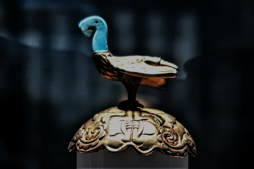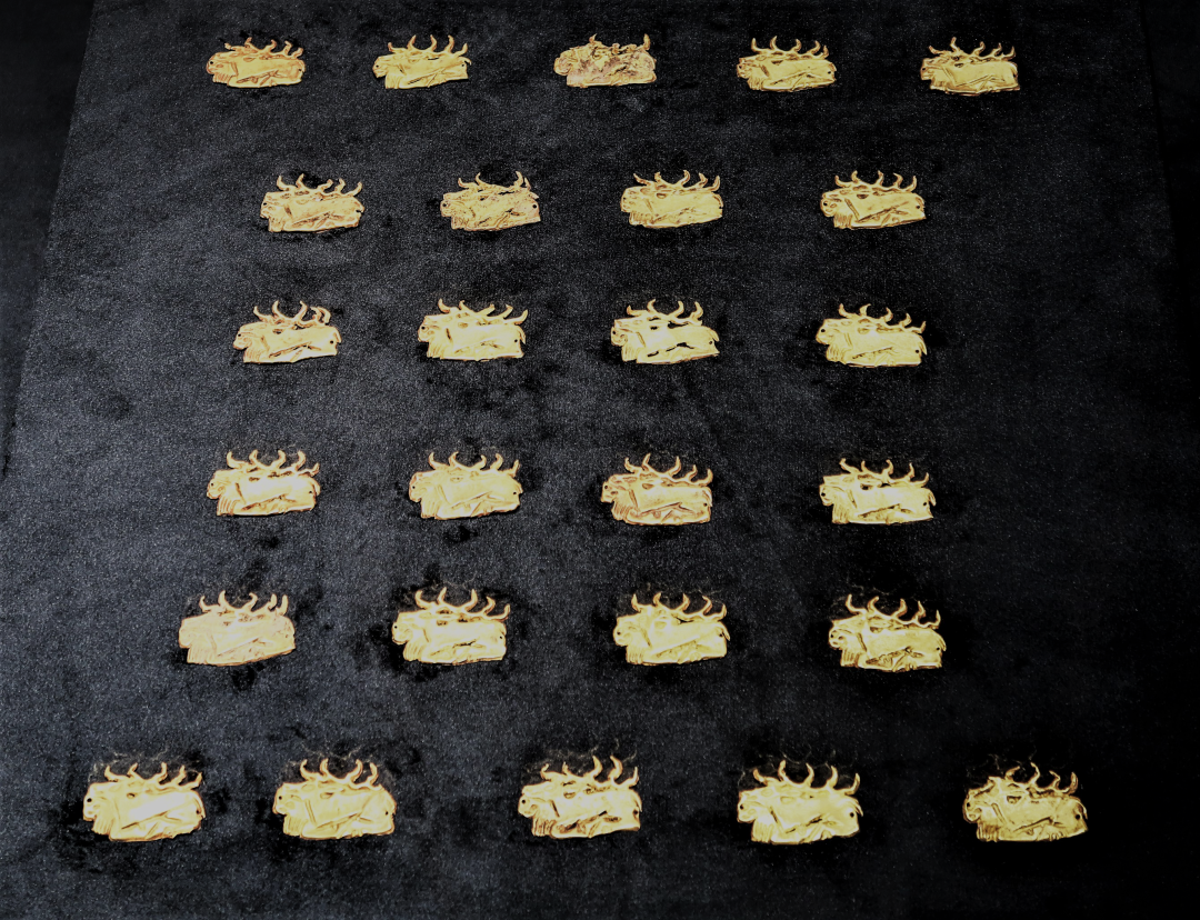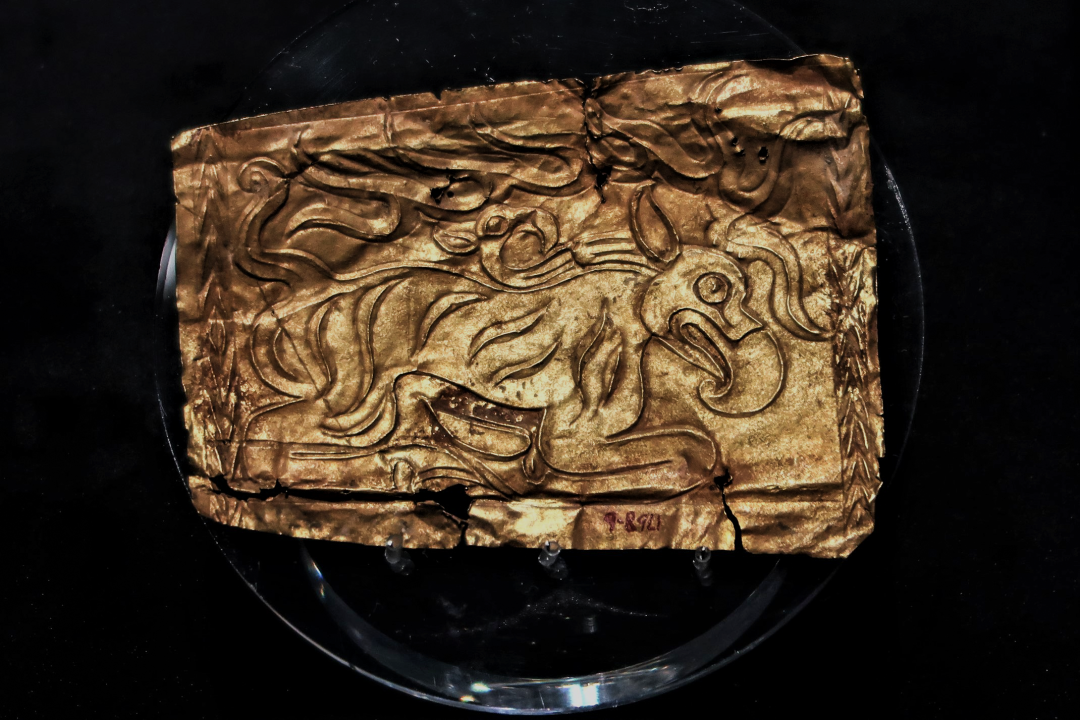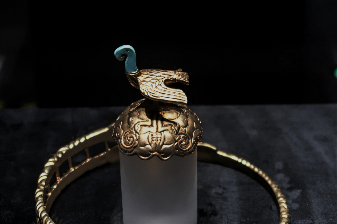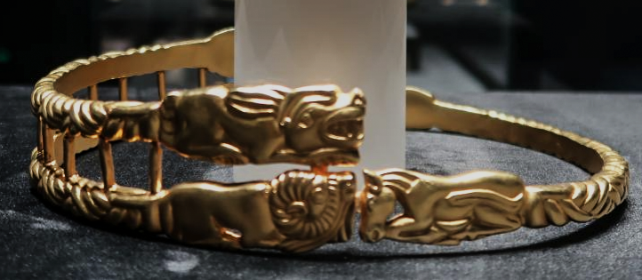 金冠是匈奴王或酋长的冠饰,不仅是艺术的结晶,更是权力的象征,鹰顶金冠也是迄今为止我国所发现的唯一的“胡冠”,代表了战国时期我国北方民族贵金属工艺的最高水平,有“草原瑰宝”之誉。