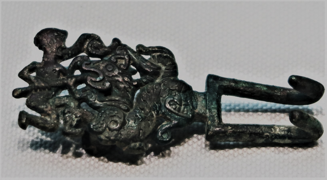 鄂尔多斯青铜器中也会有神秘的怪兽纹样,目前还难以断定是什么动物。