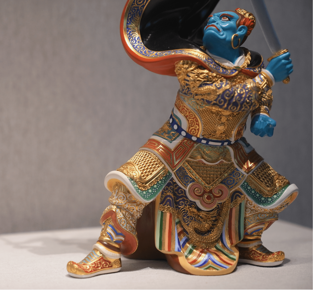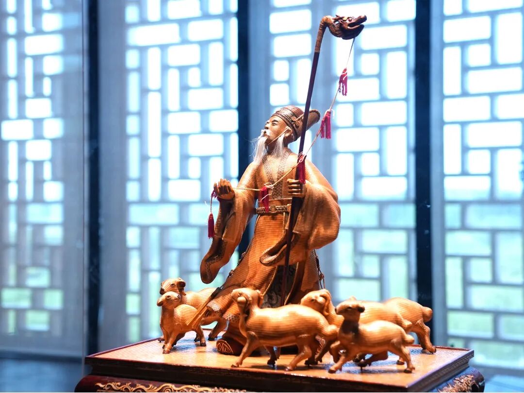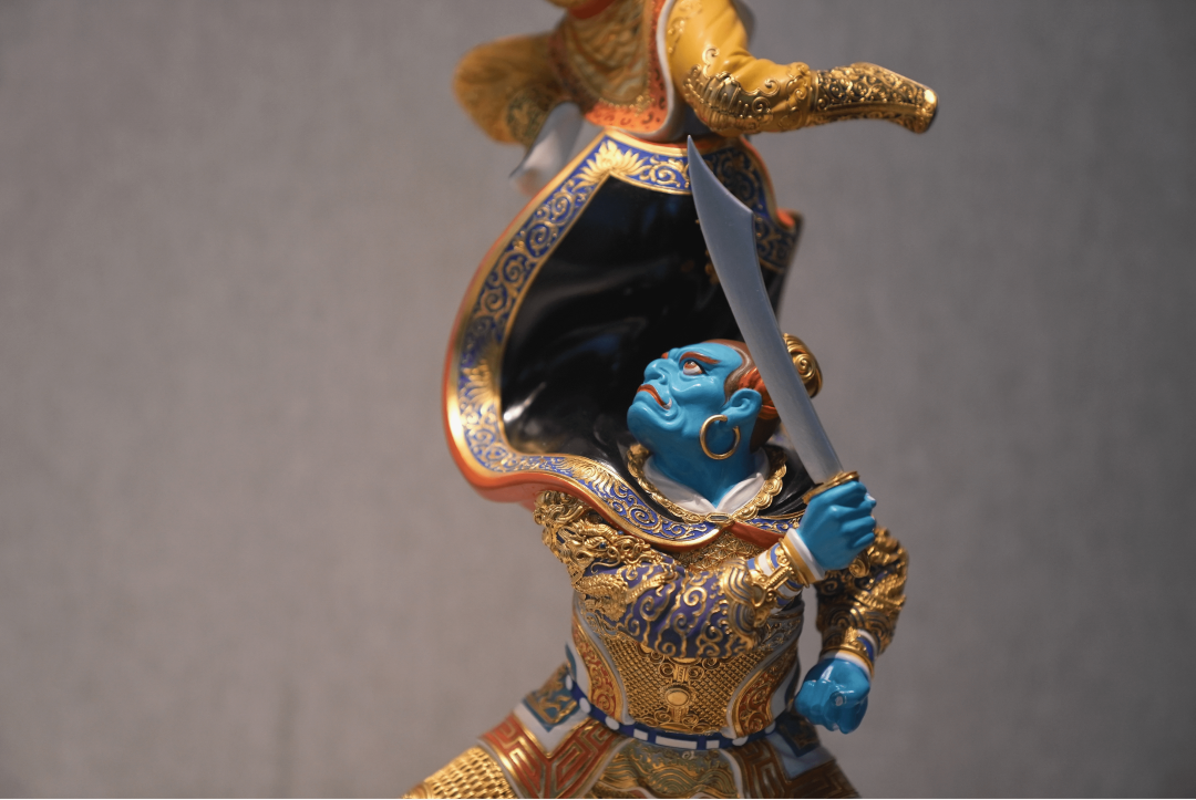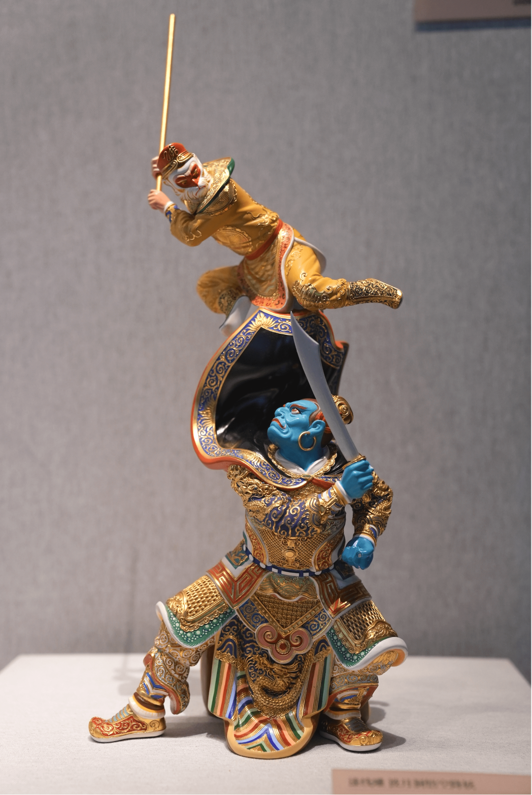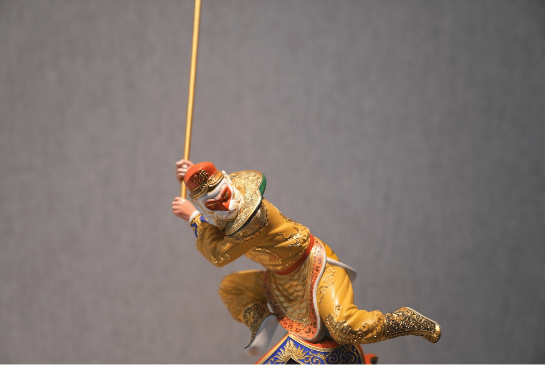 家喻户晓的四大名著是艺术家创作时不会轻易放过的选题。在展厅里,高举如意金箍棒的孙大圣仿佛就在你眼前降妖除魔,一袭金色战袍赋予了他英勇神武的形象,这还要归功于中国老手工艺中的瑰宝——漆线雕。