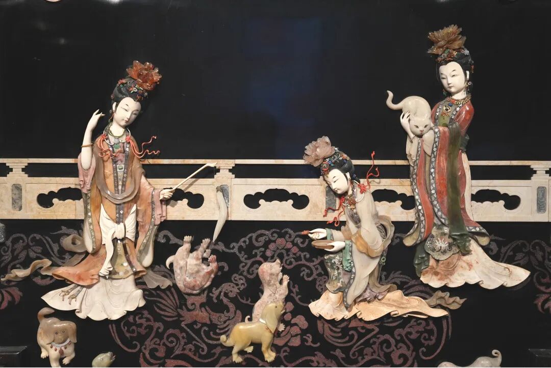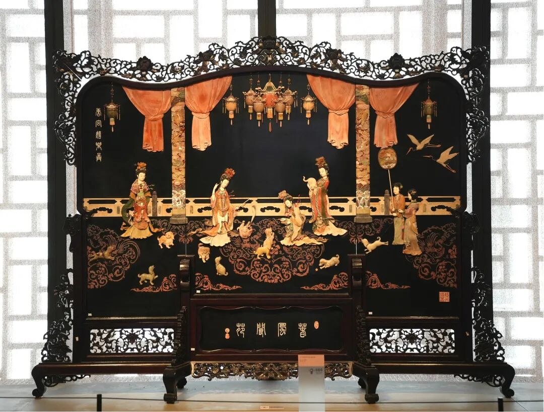 多宝嵌漆屏风 唐宫嬉乐图 局部展示