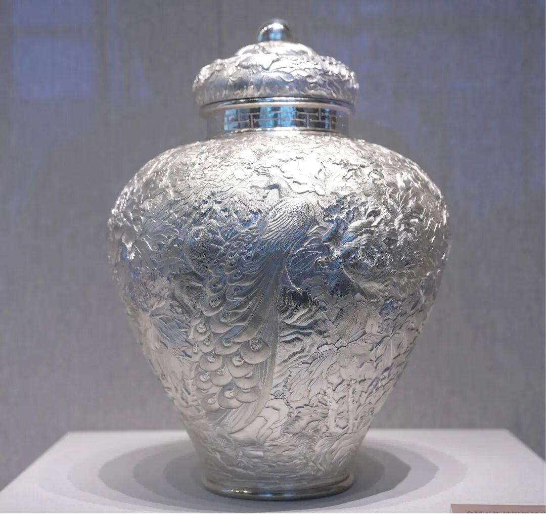 金属工艺 纯银錾刻 富贵满堂 如意罐