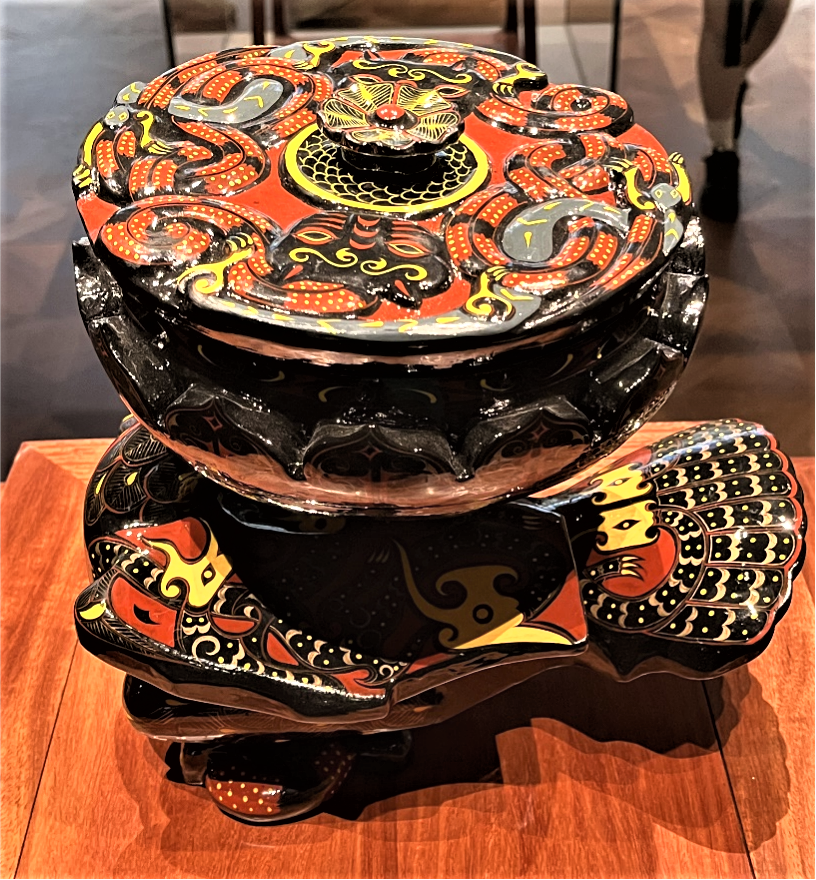 2000 年出土于荆州市天星观二号楚墓的凤鸟莲花豆,为战国时期的漆器。墓主人是楚国邸阳君潘成的夫人,而邸阳君潘成在当时可是仅次于楚王的高级贵族。