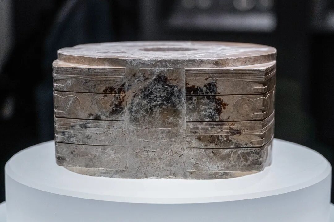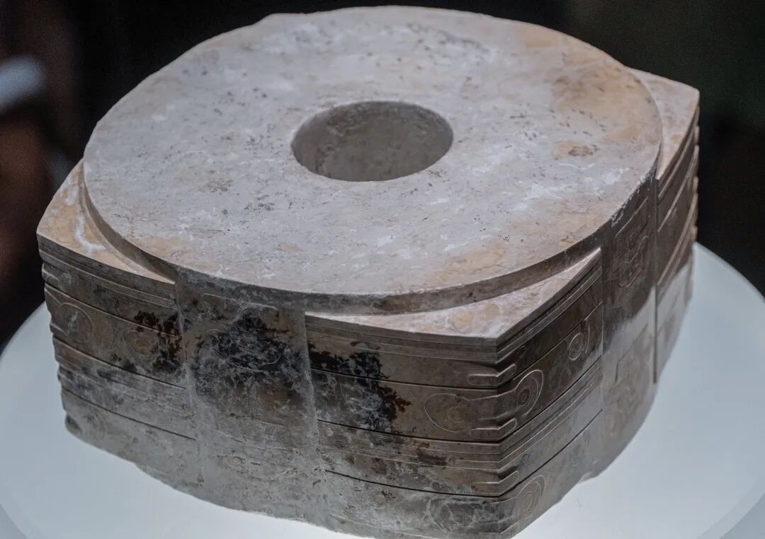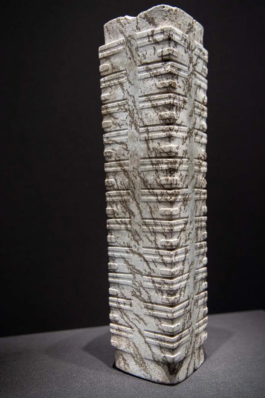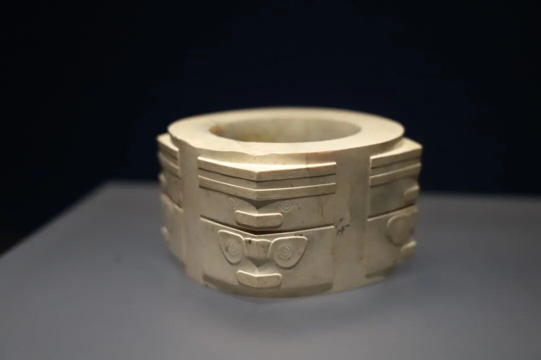 中国古代对于宇宙的认识是“天圆地方”,方形玉琮以四面八方的“实”,向心环绕中空的“虚”,圆空的中心上通天宇,象征通天的神柱,是良渚人对于沟通天地的渴望与理想。