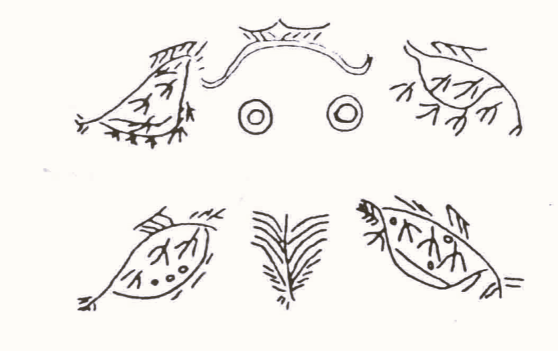 河姆渡遗址陶鹏上图案,与神徽有相似的特征。来源:刘斌《法器与王权》