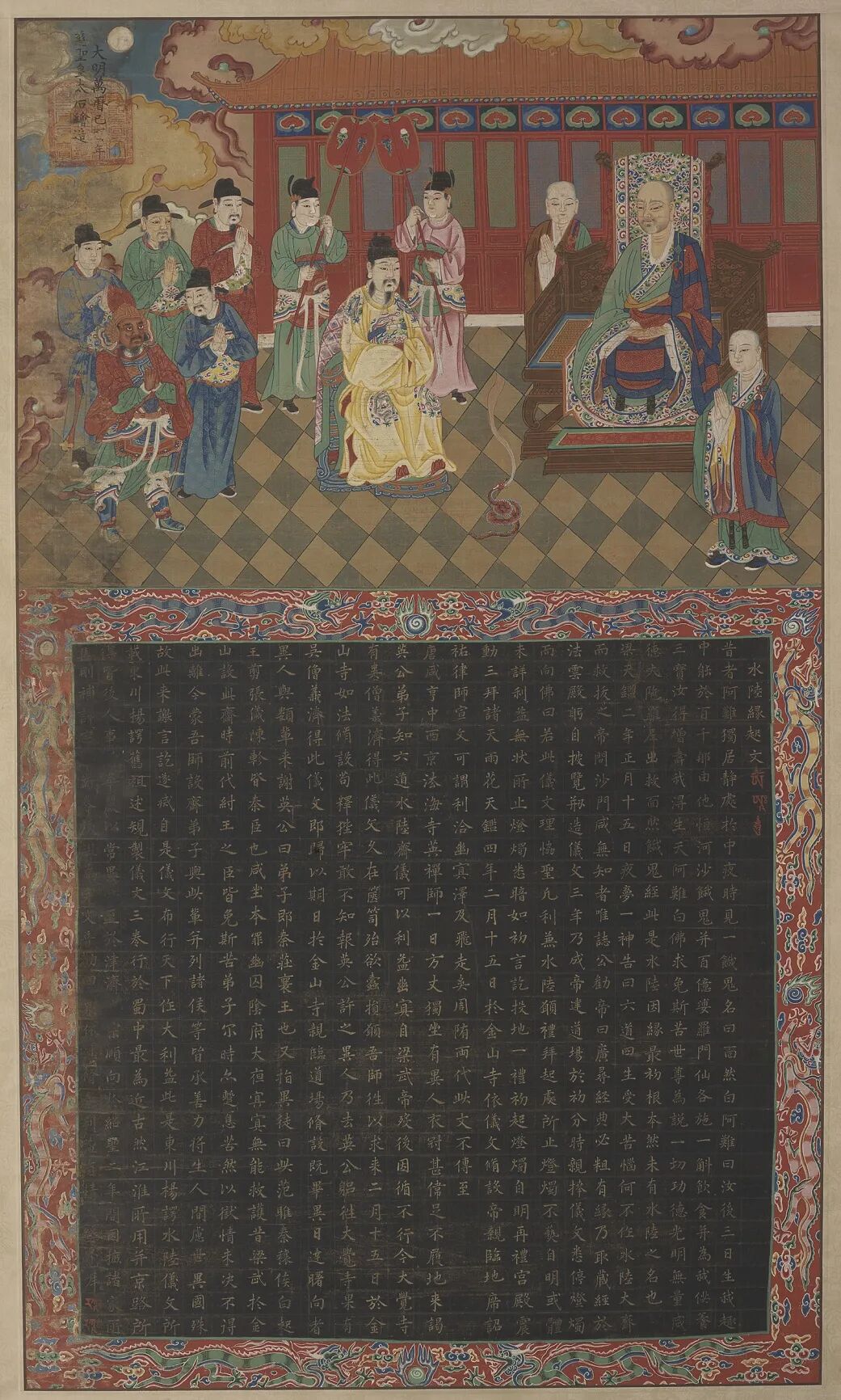 此后寺庙里做水陆法会,第一幅画都会挂水陆缘起图。也有的寺庙是用一块水陆缘起碑这样的形式。