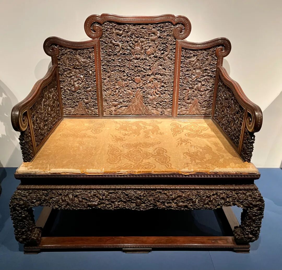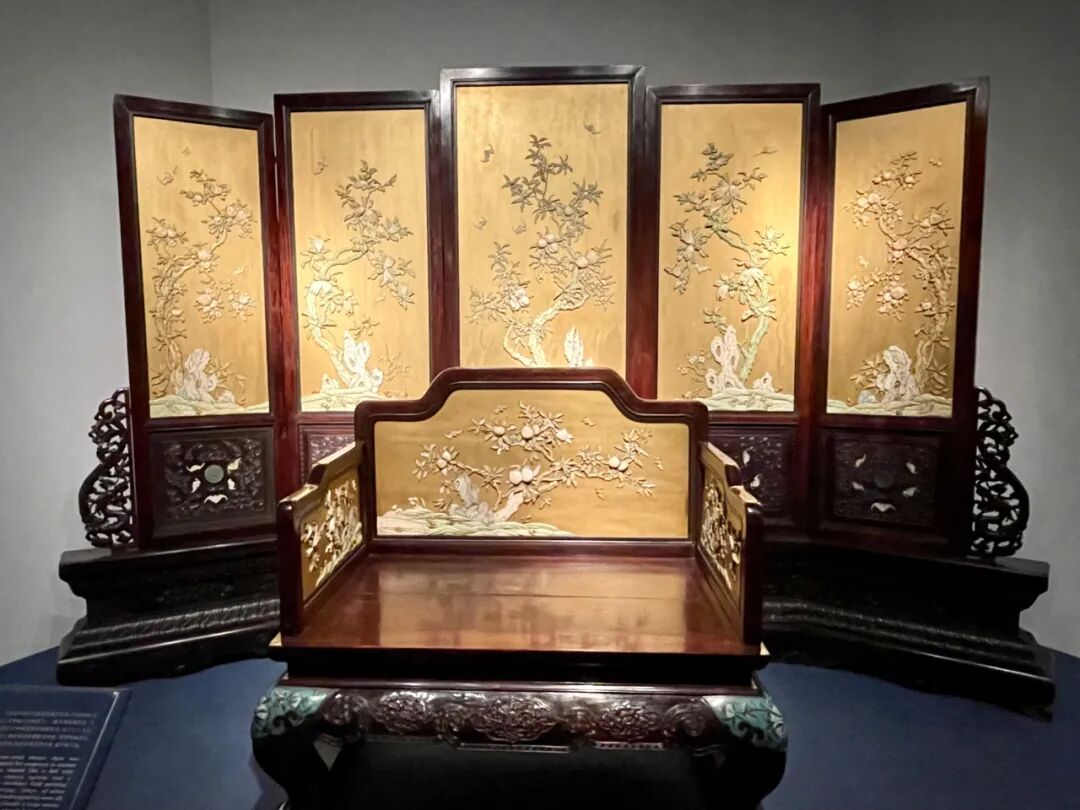 清代部分也毫不逊色:带黄绫茵垫的“原装”龙纹宝座,雕刻百鸟朝凤大场面的紫檀多宝格,涂金大屏风……让您不用去故宫博物院,也能领略家具里的皇家气派。