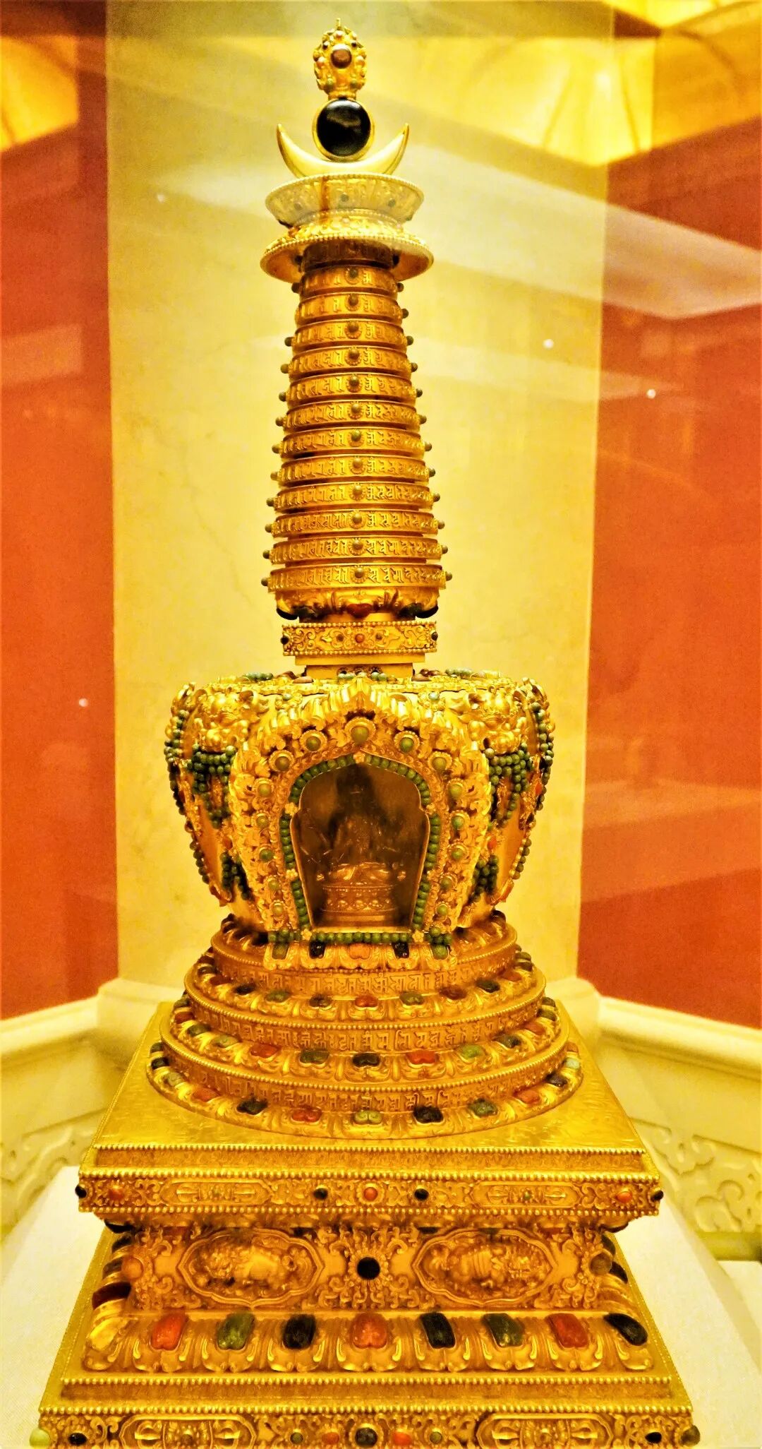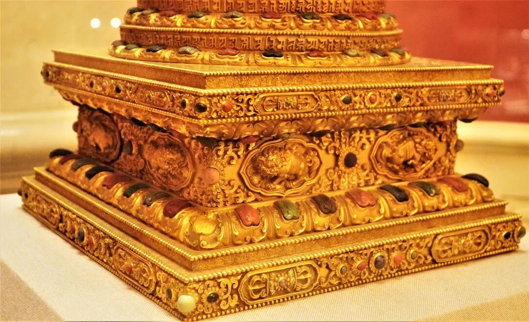 清朝时期藏传佛教兴盛,清宫内廷广设佛堂,金银器中亦有不少内蕴藏传佛教艺术文化。此类金银礼器或出自造办处,或来自各地进献。