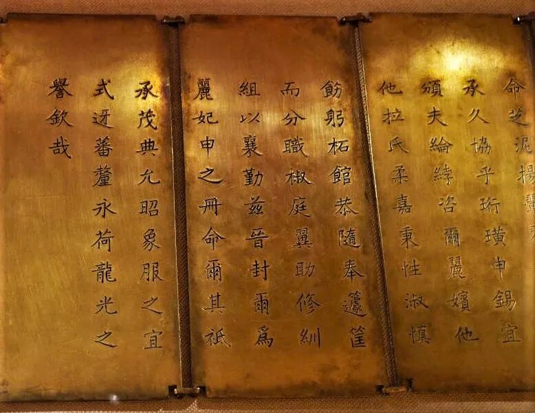 《国朝宫史》卷十《典礼六》“仪卫”一项,皇太后、皇后仪驾中均有金提炉二、金香盒二、金洗一、金水盂一、金瓶二,是所谓“金八件”。《红楼梦》第十七回至第十八回写元春省亲的排场,仪仗中即有“销金提炉焚着御香”,这里的“销金”,当指镀金。